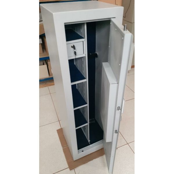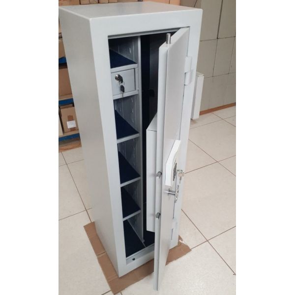 possui 01 gaveta, 03 suporte para armas longas, 03 prateleiras Removíveis, acompanha parafuso e bucha para fixação é