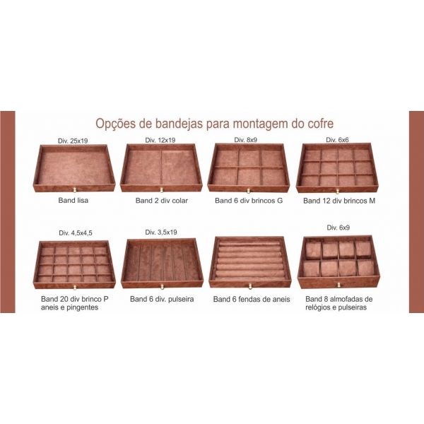 Entrar em contato para consultar modelos de bandejas, cores, tamanho do cofre.